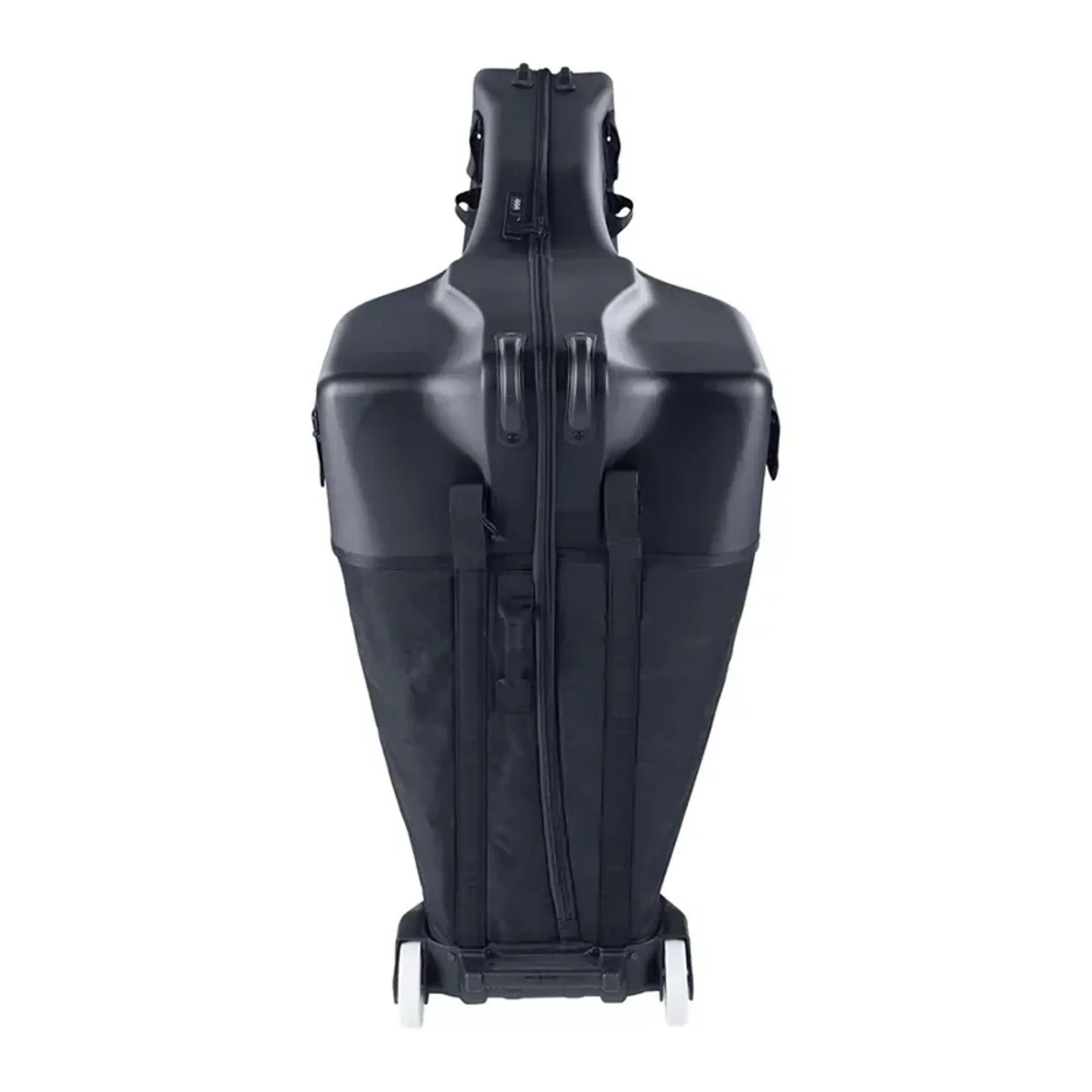 The ultra-lightweight and very secure hybrid bag design can be folded down and easily stowed away. The bike fitting-proof design means cockpit settings do not have to be changed, and only the wheels and pedals need to be removed. The top part is made of impact and pressure resistant polycarbonate shells, offering protection from lateral pressure.