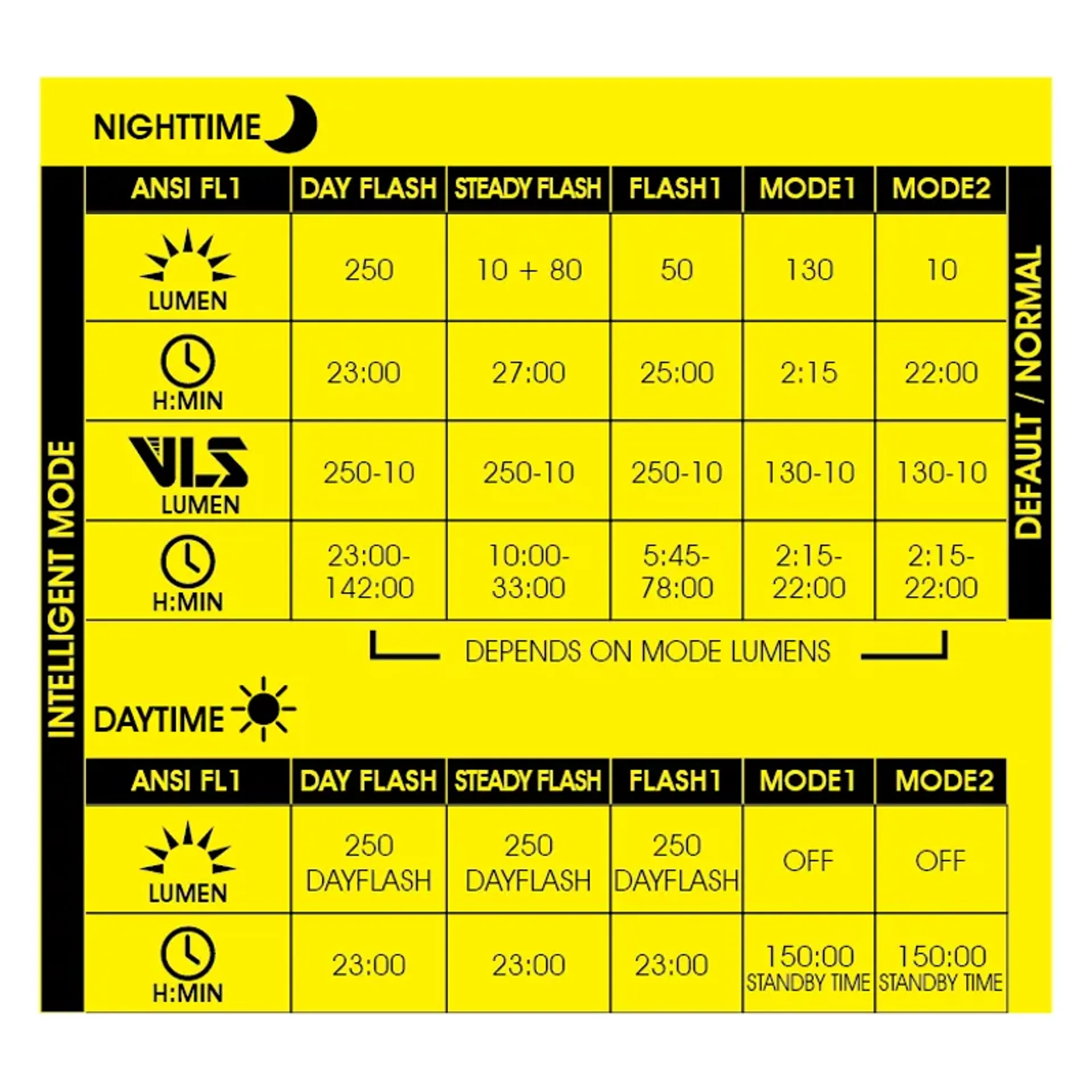 • 5 modes: day flash / steady flash / flash 1 / mode 1/ mode 2