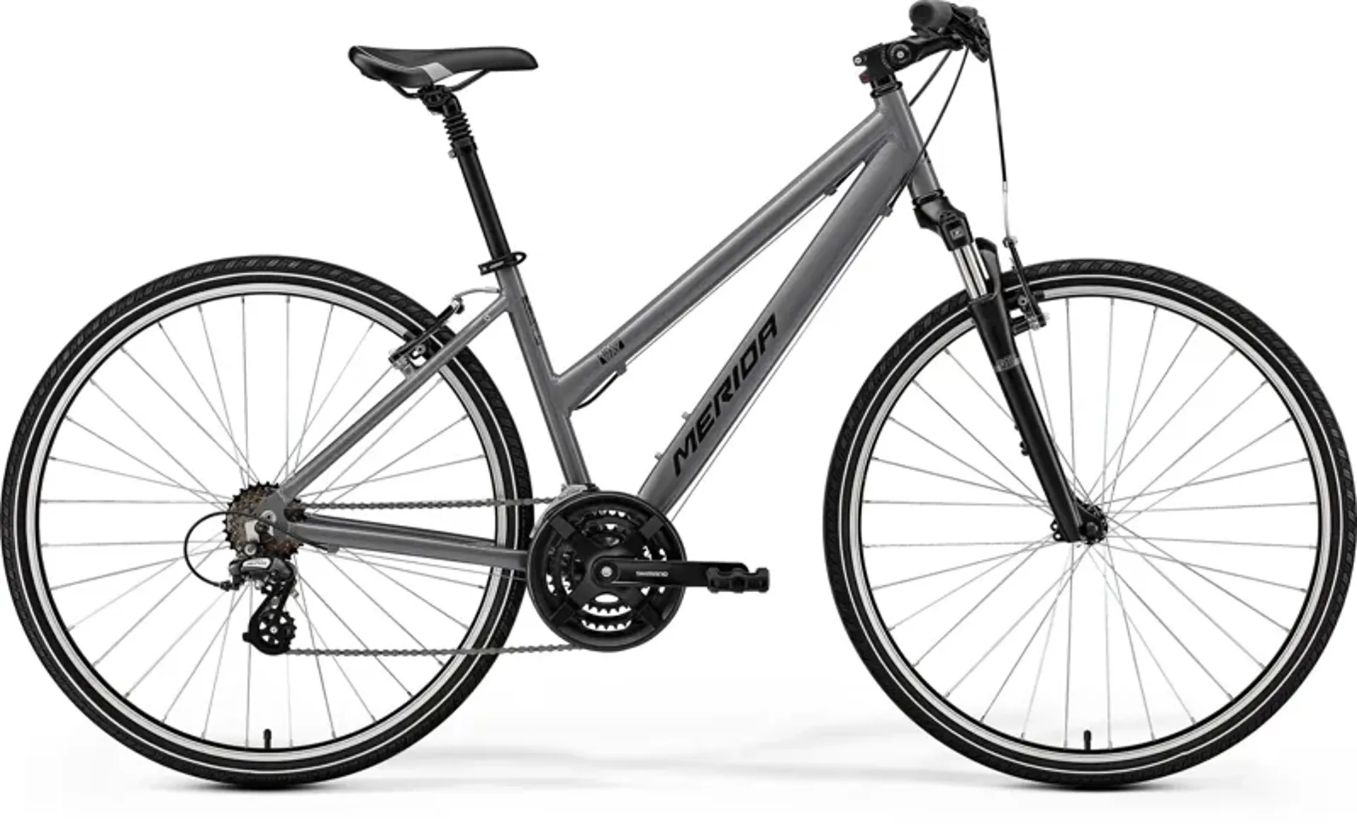 Merida Crossway 10-V Women's Hybrid Bike in Silk Warm Slate Grey/Black