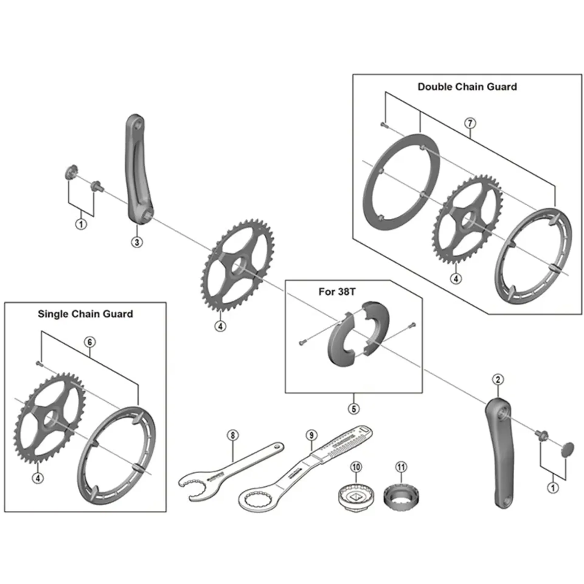 • Sm-cre50 38t single chain ring cover and fixing bolt is product number 6 in the attached image
