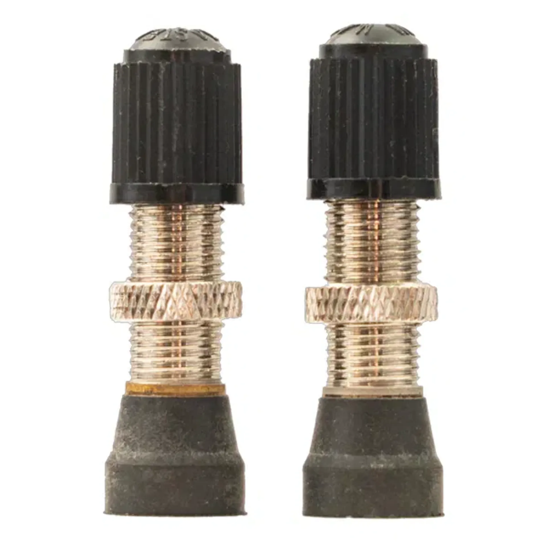 Brass tubeless schrader valve compatible with tubeless rims drilled with a 7.5-8.5mm valve hole. Features a removable valve core for sealant injection and universal stopper to provide a reliable seal on most rim shapes