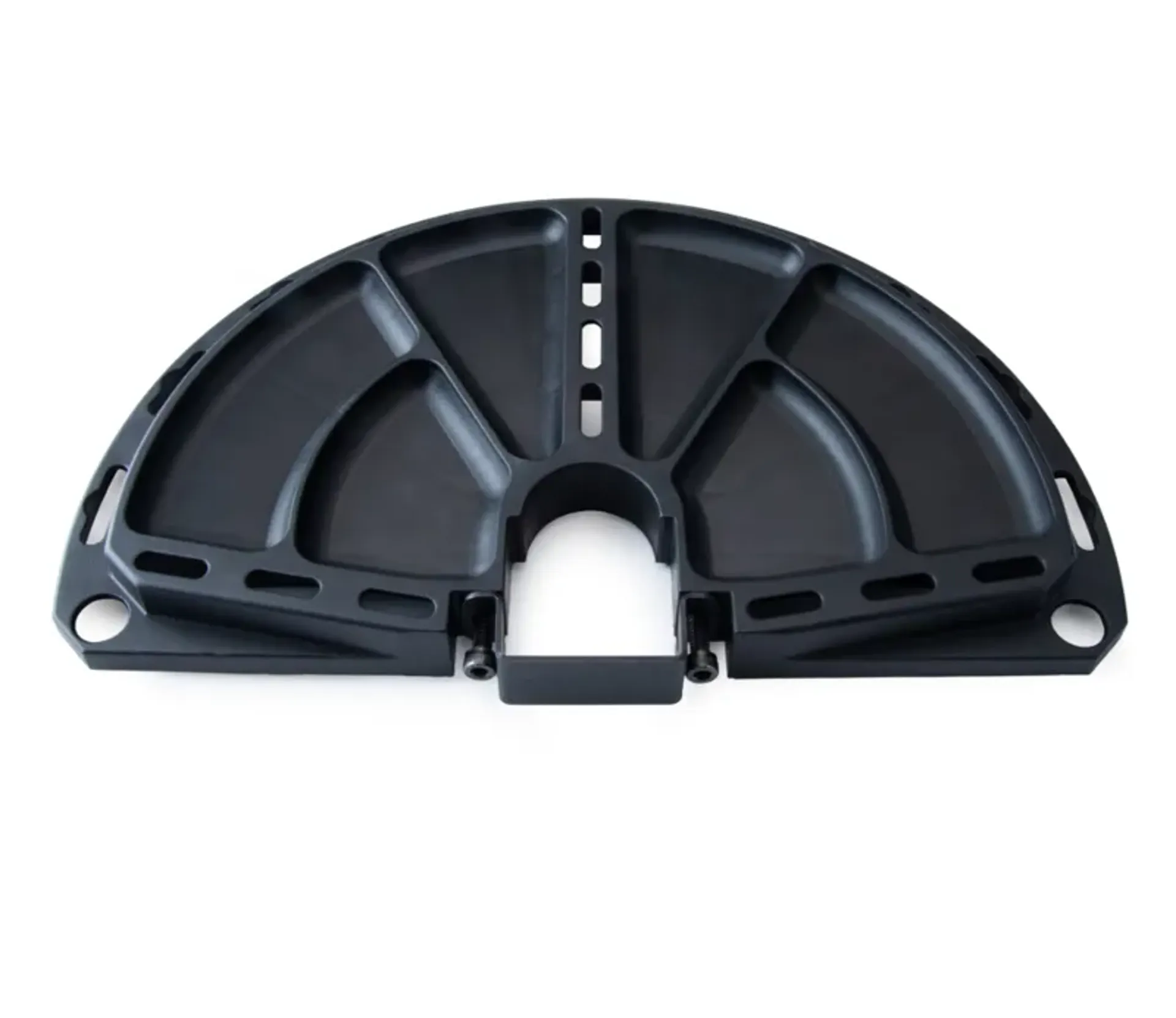 The Park Tool #104-30 work tray has multiple compartments and a variety of slots and holes for keeping small parts and tools close at hand, so you can think less about the location of that wrench or bolt and more about what you are going to do with it.